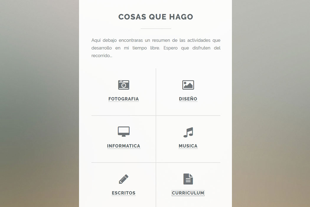Sitio web destinado a utilizarse como Curriculum Vitae online. Es ideal para mostrar la calidad del trabajo de un diseñador o desarrollador web.